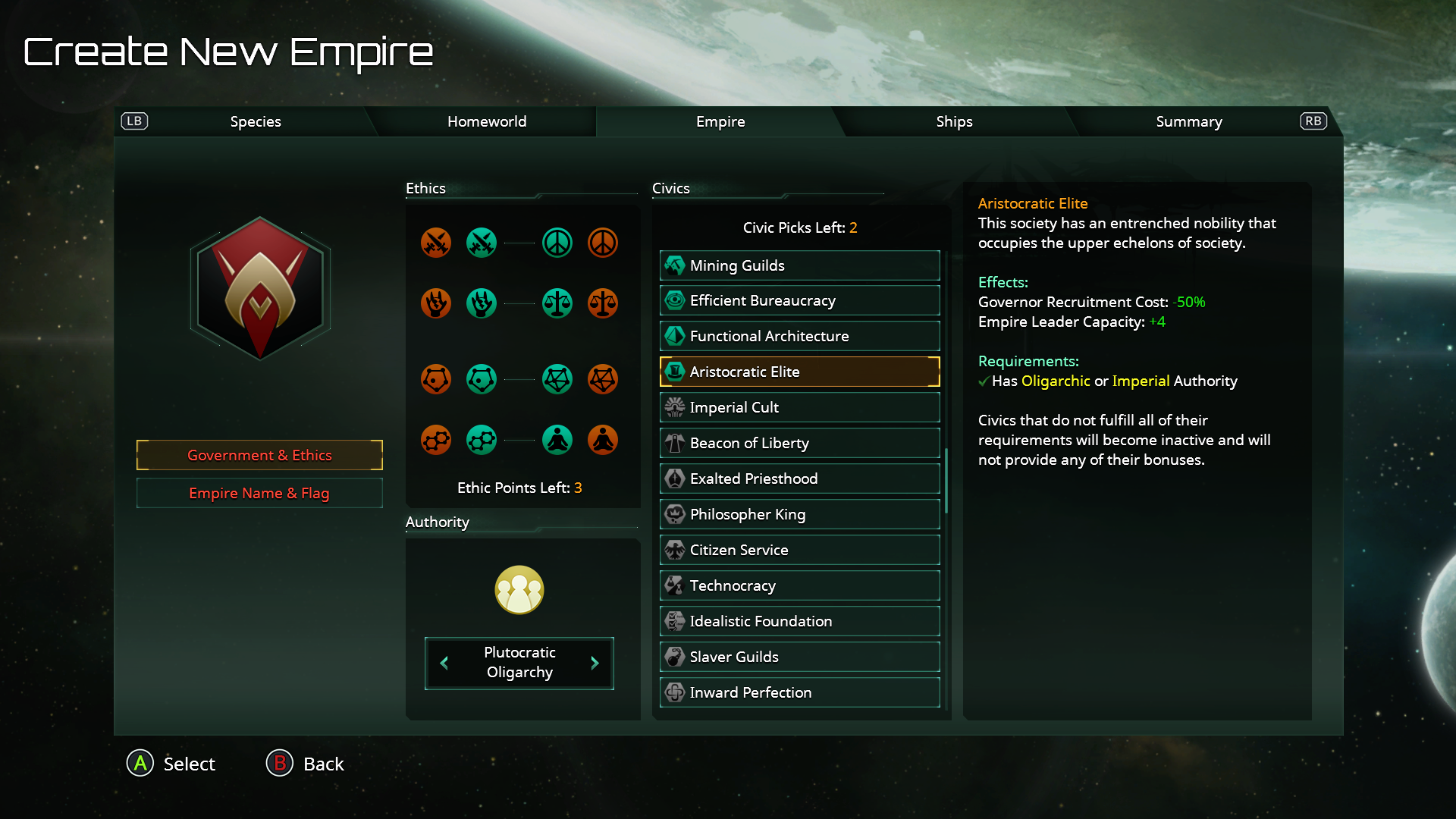 You can choose the likeness of your people, and even your first leader (elections will be held automatically after). Are you a human population? Or alien? You can also choose what kind of government you are. Are you a Egalitarian Democracy, or a dictator who keeps slaves? (yup, you read that right)